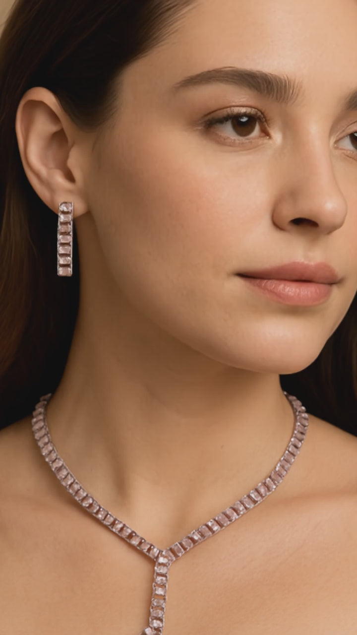 Pink Stone Necklace Set – Elegant Blush Necklace & Earrings for Women